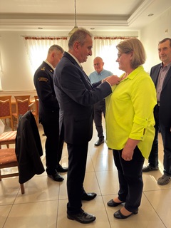 Prezes ZOW Roman Szłapa oraz KP PSP st. bryg. Janusz Bula w swoich przemówieniach przekazali życzenia dalszego rozwoju i aktywnej działalności Koła oraz dobrej wzajemnej współpracy. Następnie Prezes ZOW wręczył kol. Helenie Piecuch pamiątkowy „Ryngraf św. Floriana”. W dalszej części Zarząd Koła zaprosił obecnych na uroczysty obiad.