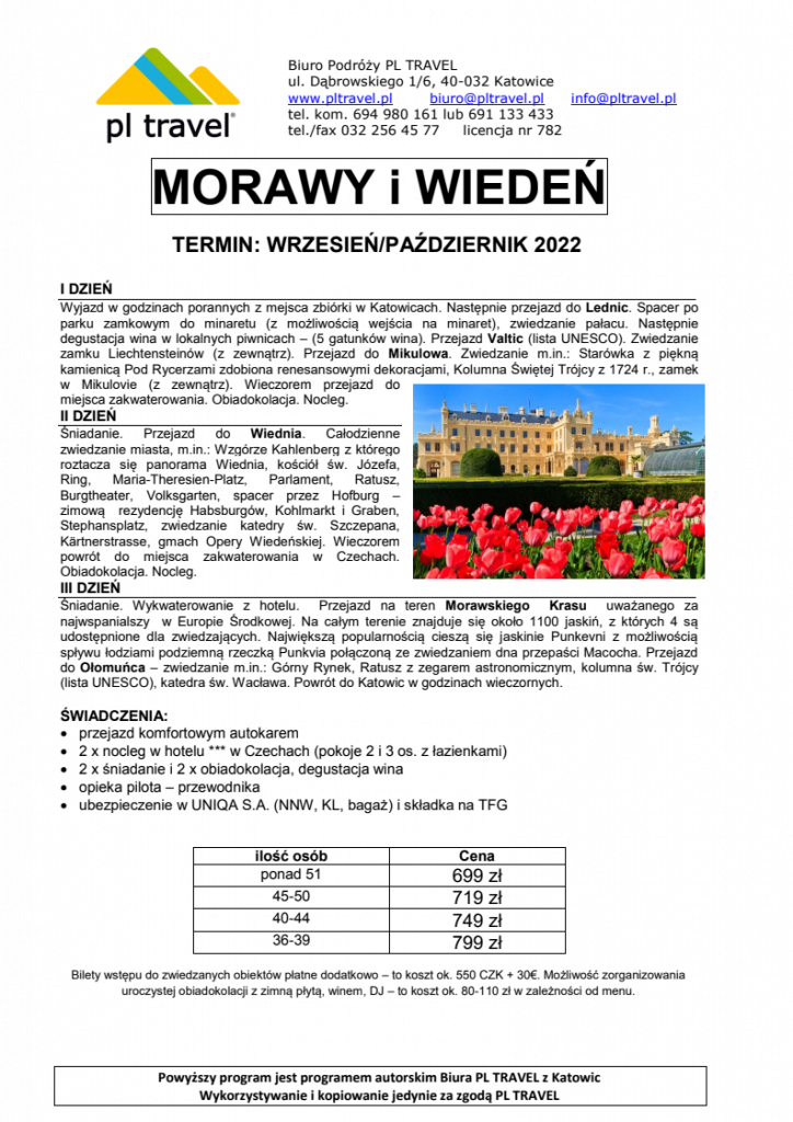 Wycieczka będzie organizowana przy ilości co najmniej 45 osób.