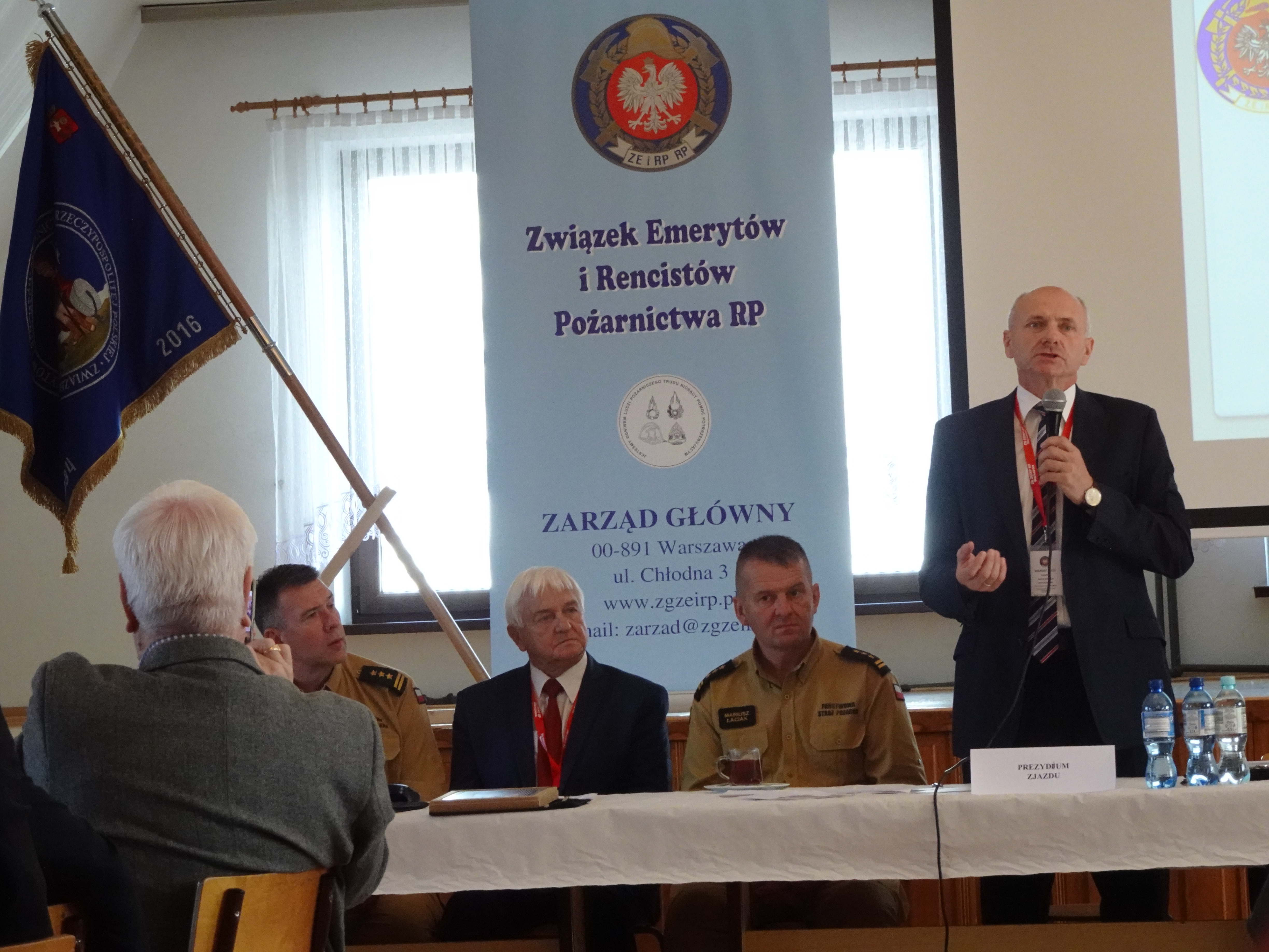 W sali OSP Kacwin wystawiono sztandar Zarządu Głównego ZEiRP RP w Warszawie i około godziny 19.30 rozpoczęto obrady Zjazdu, które otworzył Prezes Zarządu Głównego kol. Zygmunt Politowski. Kolega Prezes poprosił o powstanie wszystkich uczestników Zjazdu w celu odśpiewania i odegrania HYMNU PAŃSTWOWEGO. Następnie uczczono minutą ciszy pamięć o kolegach, którzy odeszli w czasie kadencji na wieczną wartę. Dokonano wyboru Prezydium Zjazdu. Prezes na funkcję Przewodniczącego Zjazdu zaproponował kol. Wiesława Woszczynę, a na Zastępcę Przewodniczącego – kol. Jarosława Kurka. Zaproponowani wyrazili zgodę uzyskując jednogłośną akceptację delegatów. Prowadzenie Zjazdu przejął wybrany Przewodniczący. Przewodniczący Zjazdu do Prezydium zaprosił ustępującego Prezesa Zarządu Głównego kol. Zygmunta Politowskiego oraz Naczelnika OSP Kacwin dh Adriana Magierę, który zapoznał koleżanki i kolegów Delegatów z historią oraz działalnością jednostki OSP.