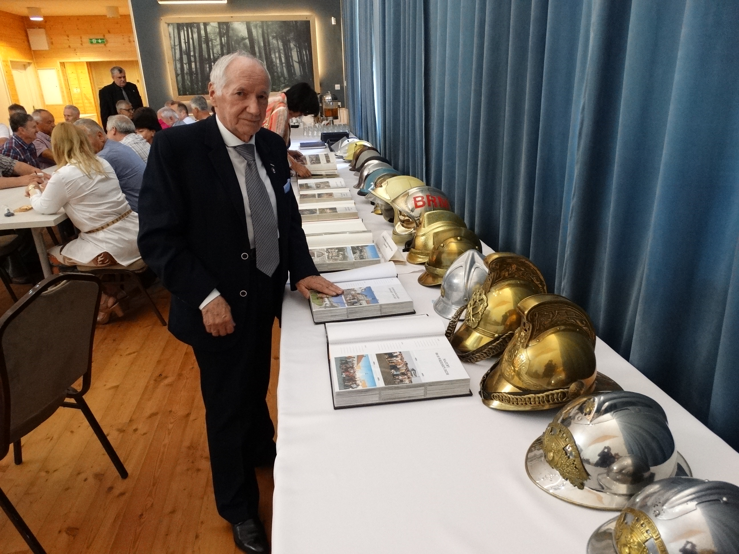 Obecni na uroczystym spotkaniu oglądali wystawione zabytkowe „strażackie hełmy z kolekcji kol. Czesława Mili Prezesa koła w Częstochowie oraz kroniki koła.