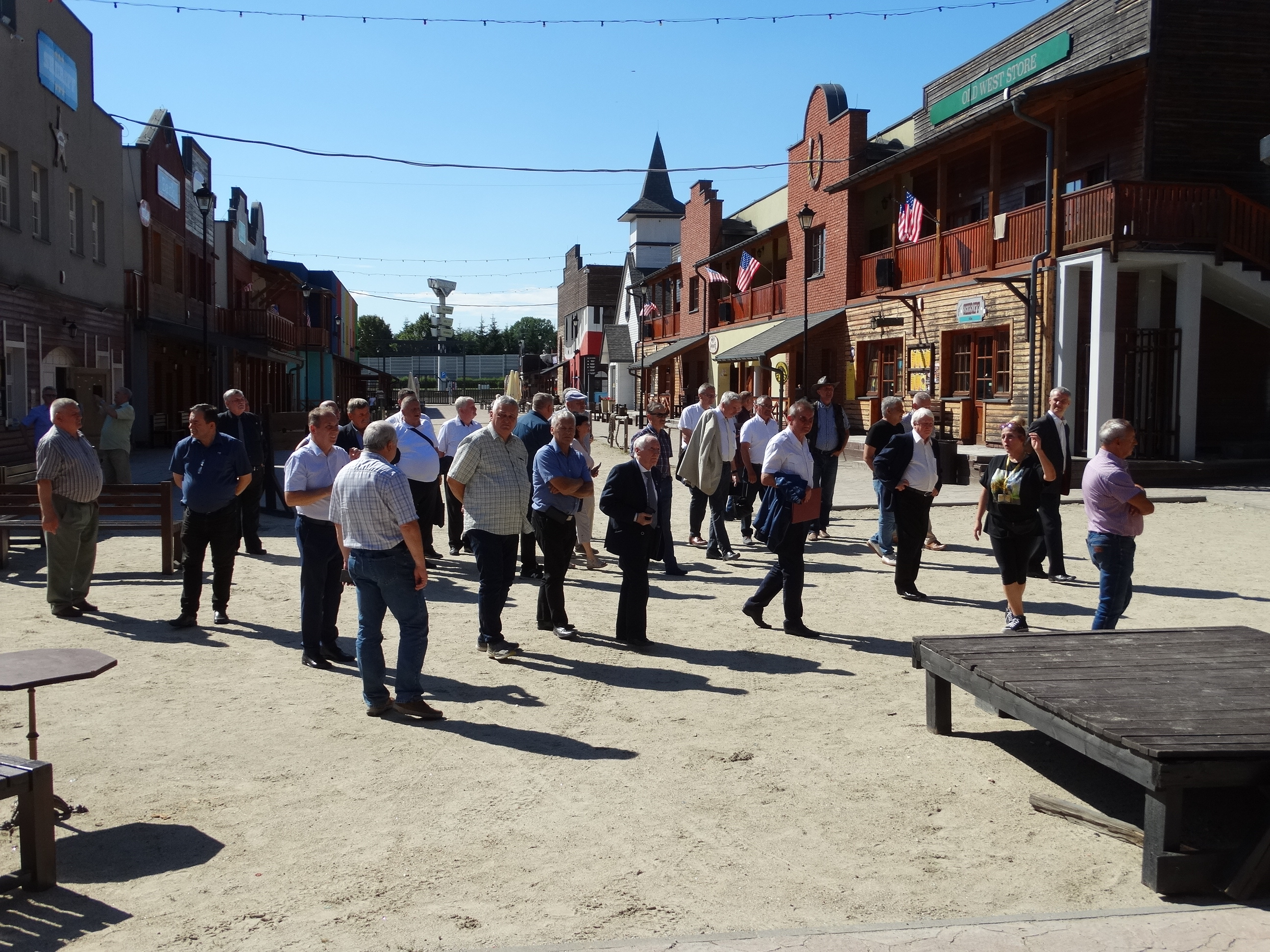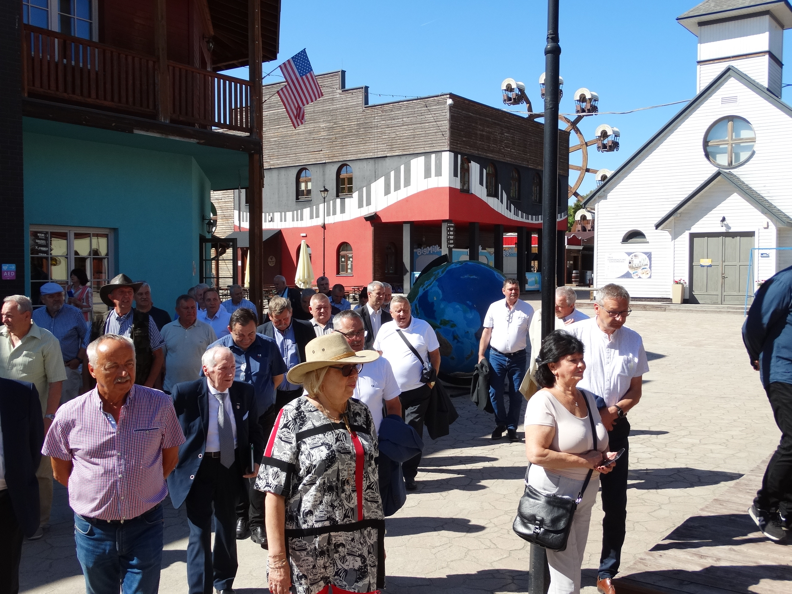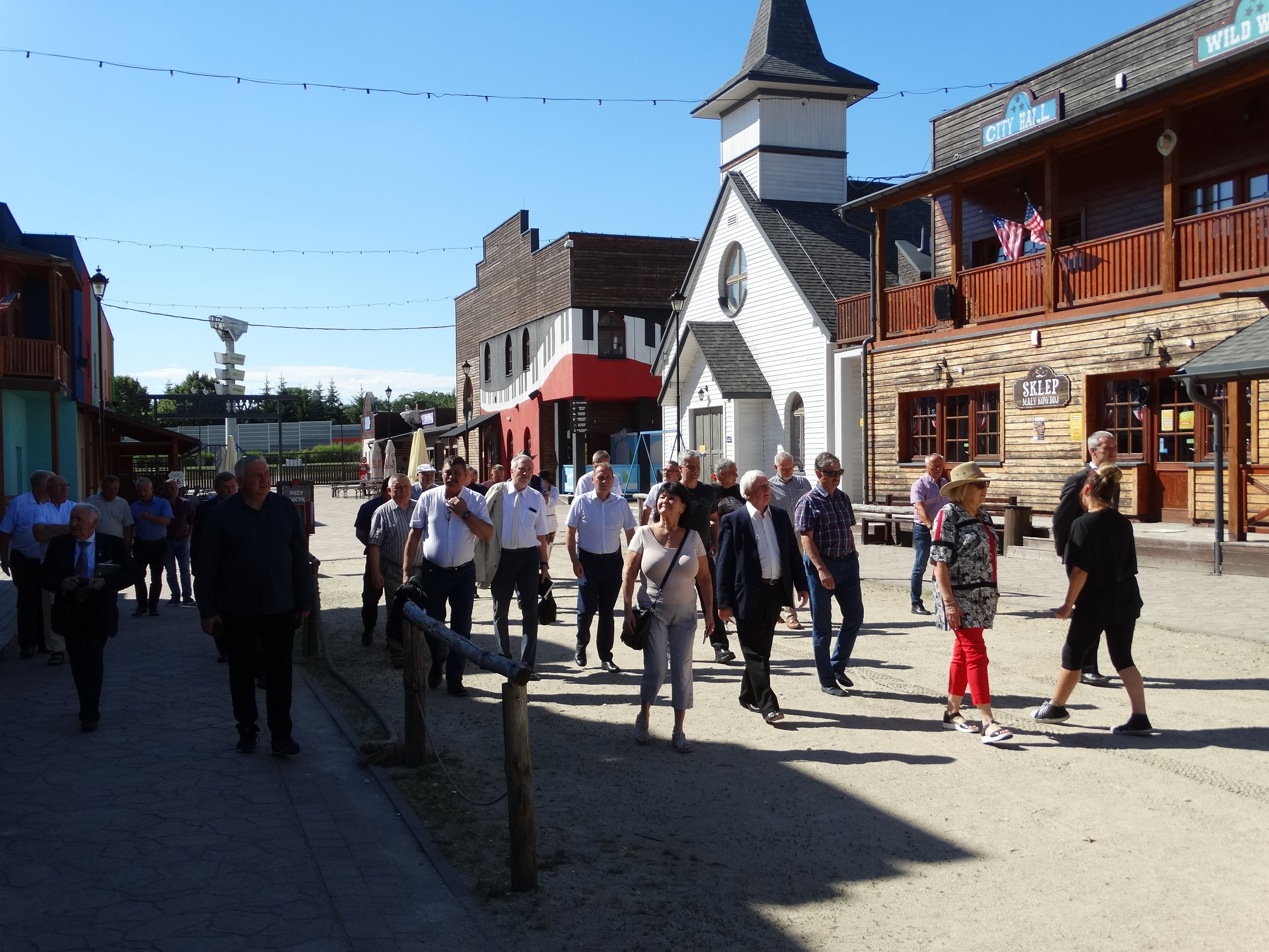 Uczestnicy uroczystości zapoznali się z 14 hektarowym miasteczkiem – parkiem rozrywki „TWINPIGS” spacerując przy pięknej pogodzie a informacji udzielał pracownik.