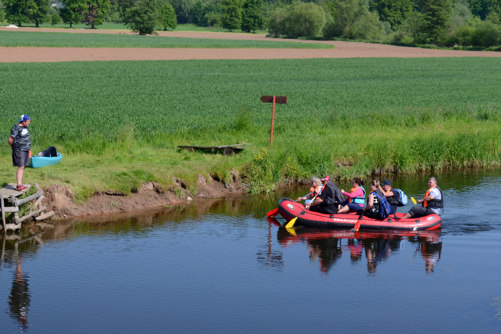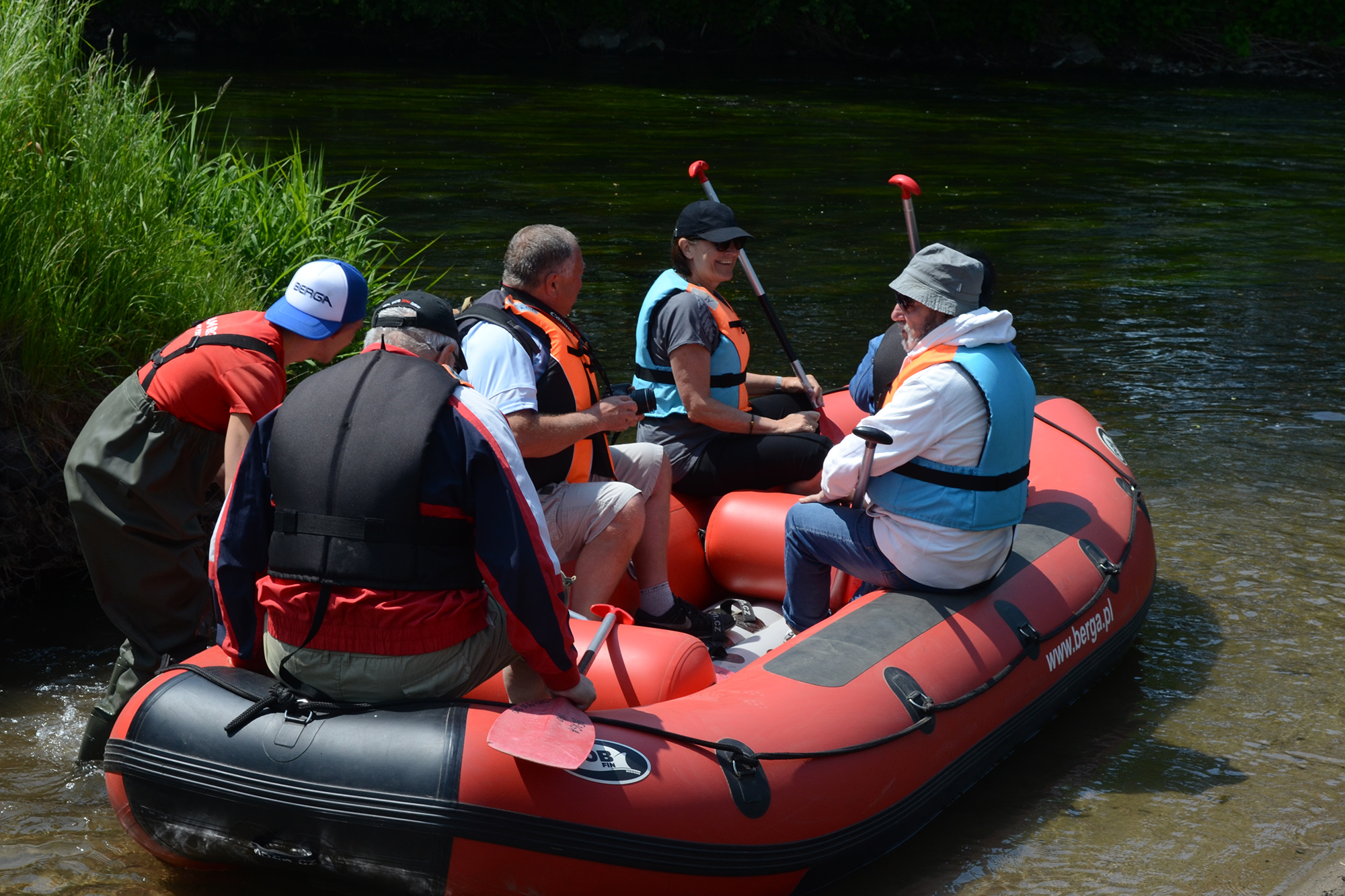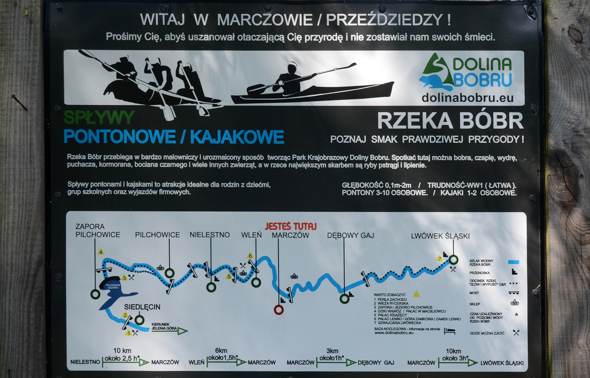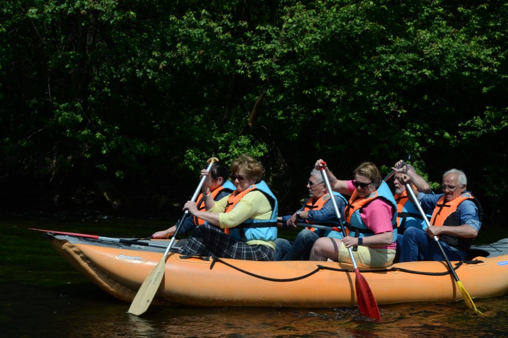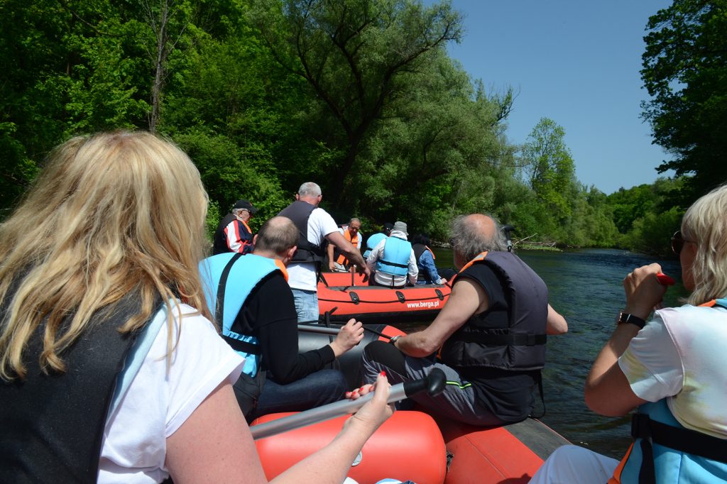 Późnym popołudniem zostaliśmy zakwaterowani w pensjonacie Magda w Lasocinie gdzie spożyliśmy obfity posiłek. Na koniec dnia mały koncert przy ognisku, 2 gitary i harmonijka, śpiewniki, kiełbaski, coś na zapitkę i oczywiście wesołe, śpiewające towarzystwo. Nazajutrz w niedzielę miejscowość Bolków, zwiedzanie zamku w Bolkowie. Kolejna atrakcja naszej wycieczki to spływ pontonowy rzeką Bóbr na trasie Wleń – Marczów (ok. 3 godzinki wiosłowania). Było pięknie, pogoda dopisała, cudowne widoki. Miejscami trzeba było wysiąść do wody i przepchnąć ponton z mielizny. Byli też tacy, którzy próbowali nurkować … ale to nie jest temat stricte związany z wycieczką. Ze względu na szybko płynący czas w miłym towarzystwie i pięknej scenerii na pontonach, nie udało nam się dotrzeć i zwiedzić planowany Lwówek Śląski, gdyż obiadokolacja czekała już na nas w Pensjonacie Magda. A wieczorem kolejny koncert i śpiewy przy ognisku. W poniedziałek miejscowość Sokołowsko, Sanatorium doktora Brehmara. Cerkiew św. Michała Archanioła z bardzo sympatycznym i miłym ojczulkiem. Krzeszów, europejska perła baroku. W Krzeszowie mieliśmy możliwość zwiedzenia Opactwa w całej swej urokliwości, przepychu i krasie. Wszystko działało jak w szwajcarskim zegarku, aż tu trach! Autokar się zepsuł. A jeszcze do zwiedzania pozostała nam Kościół Pokoju w Jaworze. Niestety nie dotarliśmy tam. Dzięki zdecydowanym działaniom Prezesa Jarka Zabłockiego oraz naszej pani Przewodnik Teresy, dotarliśmy pieszo na powrót do Bolkowa. Część grupy pojechała tam busem wynegocjowanym przez Prezesa z Komendy Powiatowej PSP w Miejscowości Jawor. W Bolkowie odpoczęliśmy i po spożyciu posiłku udaliśmy się w drogę powrotną naprawionym już autokarem. Kierowca wraz trzema ochotnikami, pomocnikami naszej wycieczki naprawili nasz środek transportu, dzięki czemu do Bielska-Białej powróciliśmy późnym wieczorem cali i zdrowi.