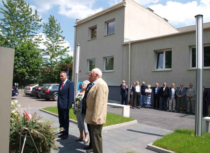 W imieniu obecnych złożenie wiązanki kwiatów oraz zapalenia znicza dokonała delegacja: