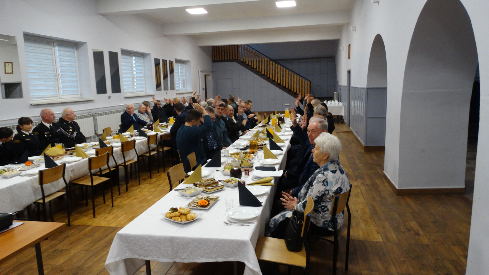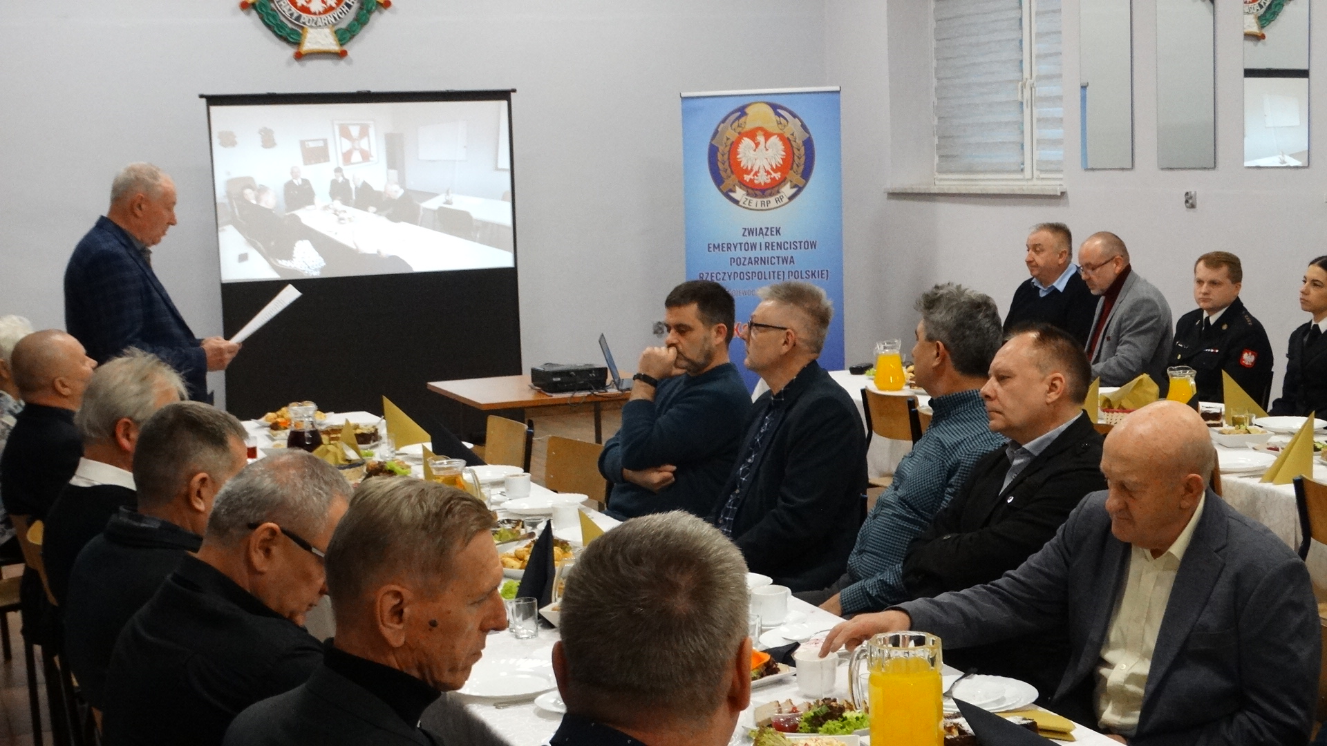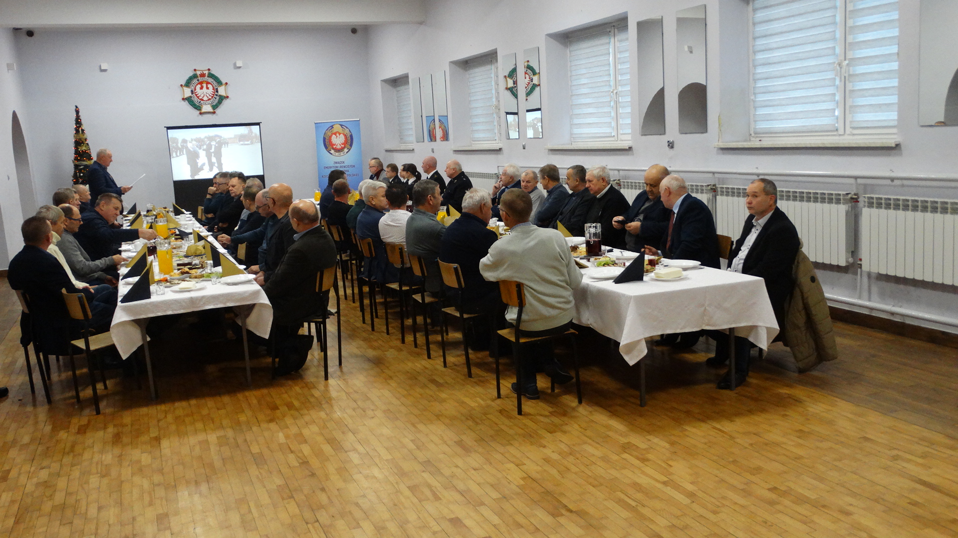 Zebranie otworzył Prezes Koła kol. Marek Łuszczyk witając zaproszonych gości w osobach: Komendanta Powiatowego PSP w Myszkowie st. bryg. Sergiusza Wiśniewskiego, Z-cę Komendanta Powiatowego PSP w Myszkowie Mateusza Nocunia, kpt. Sylwię Ślęzak, st.sek. Klaudię Brudzińska – pion finansowy PSP Myszków, Kapelana Powiatowego Strażaków ks. kan. Kazimierza Świerdzę. Zebranie członków Koła połączone zostało ze spotkaniem świąteczno-noworocznym. Na początku zebrania uczczono minutą ciszy zmarłych strażaków.