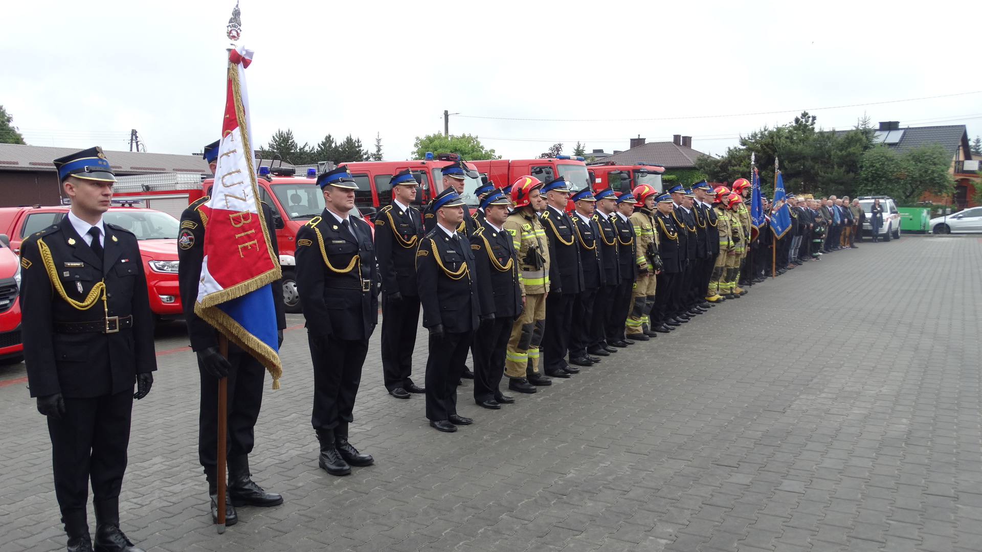 Uroczystość rozpoczęła się od złożenia meldunku Zastępcy Śląskiego Komendanta Wojewódzkiego Państwowej Straży Pożarnej st. bryg. Mirosławowi Synowcowi przez Dowódcę Uroczystości kpt. Przemysława Zenderowskiego. Następnie, po dokonaniu przeglądu pododdziałów nastąpiło przywitanie i podniesienie flagi państwowej w akompaniamencie Hymnu Państwowego. Komendant Powiatowy Państwowej Straży Pożarnej w Myszkowie st. bryg. Sergiusz Wiśniewski powitał wszystkich przybyłych gości. Kolejnym elementem uroczystości było uczczenie minutą ciszy wszystkich zmarłych strażaków, górników Kopalni Węgla Kamiennego „Pniówek” i „Zofiówka” oraz poległych na wojnie w Ukrainie.