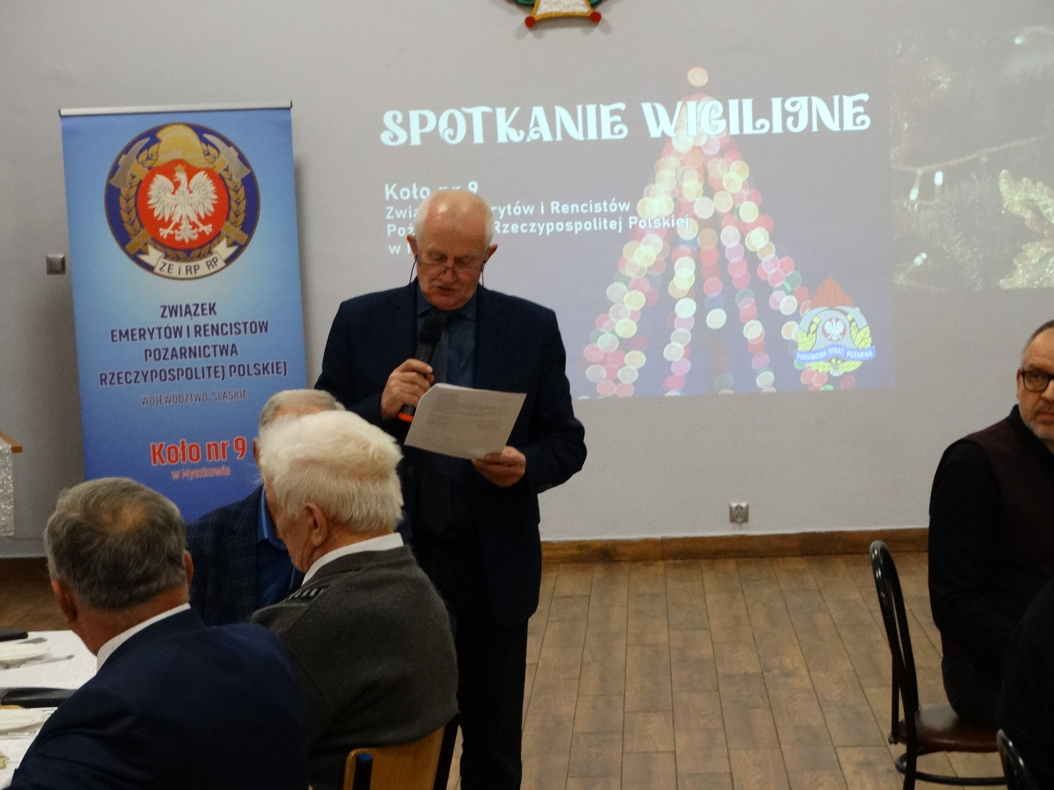 Zebranie otworzył Prezes Koła kol. Marek Łuszczyk witając zaproszonych gości w osobach: Komendanta Powiatowego PSP w Myszkowie st. kpt. Grzegorza Paula, Z-cę Komendanta Powiatowego PSP w Myszkowie bryg. Krzysztofa Dzwonnika. Zebranie członków Koła połączone zostało ze spotkaniem świąteczno-noworocznym. Na początku zebrania uczczono minutą ciszy zmarłych strażaków.