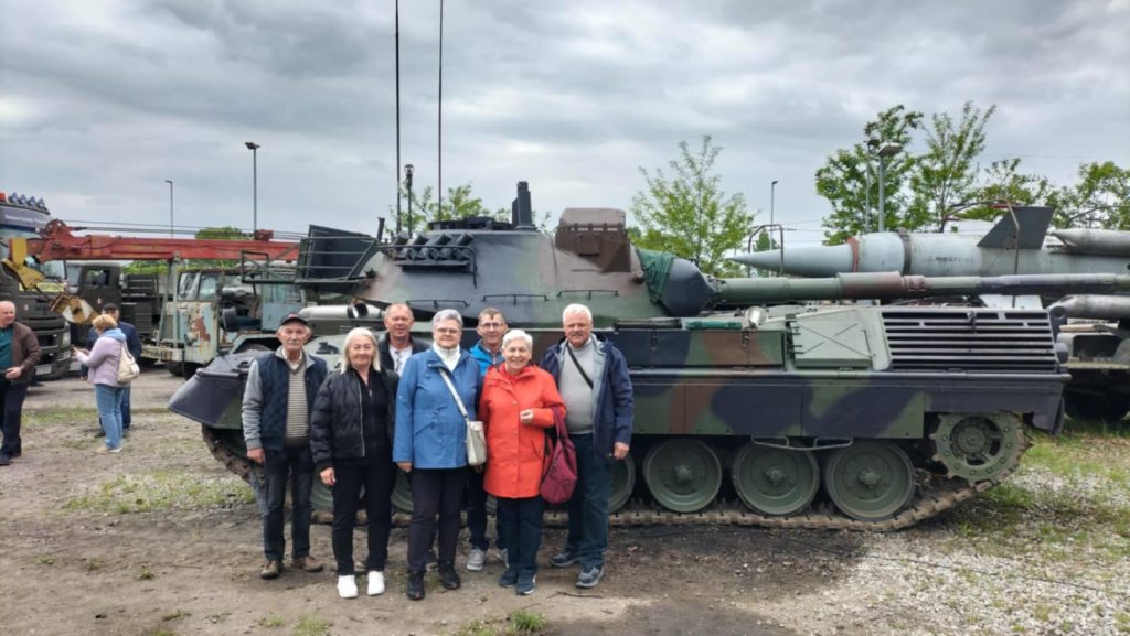 Kolejnym punktem było zwiedzanie Parku Techniki Wojskowej, który powstał przy współpracy z Fundacją Techniki Wojskowej – Mała Armia „Grupa Śląsk”. Emeryci mogli podziwiać interesujące eksponaty wojskowe. Wśród nich: pojazdy gąsienicowe, transportery opancerzone, wojskowe samochody ciężarowe, wyrzutnie rakiet, a nawet czołgi T-34 i T-72, wykorzystywane w Wojsku Polskim w XX wieku. Park w praktyce jest profesjonalnie przygotowanym i ogrodzonym terenem do ekspozycji sprzętu zarówno na wolnym powietrzu, jak i w specjalnej hali o powierzchni 450 m kw. W hali znajdą się eksponaty narażone na szkodliwe działania warunków atmosferycznych oraz zaplecze sanitarne i biurowe. Sam Park utrzymany jest w stylu terenu jednostki wojskowej – „strzeże” go solidna brama wejściowa, a także wysoki betonowy mur z zasiekami z drutu kolczastego.